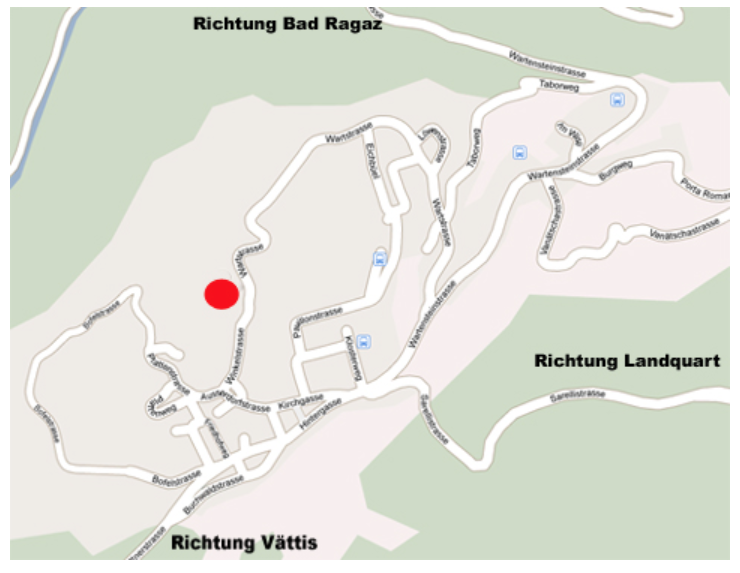 Von Landquart über die Sarellistrasse Richtung Pfäfers fahren und beim Dorfladen Prima (früher Volg) den Wegweisern (OZ/MZH) folgen.